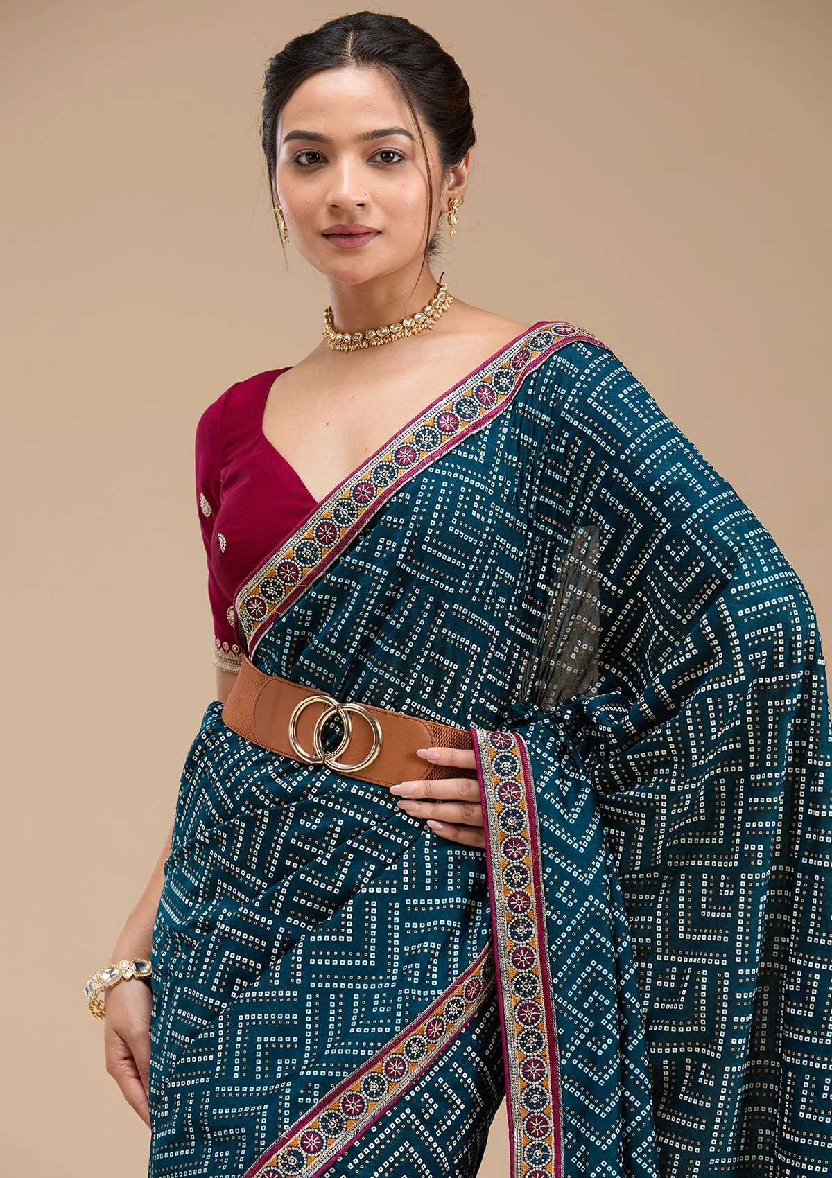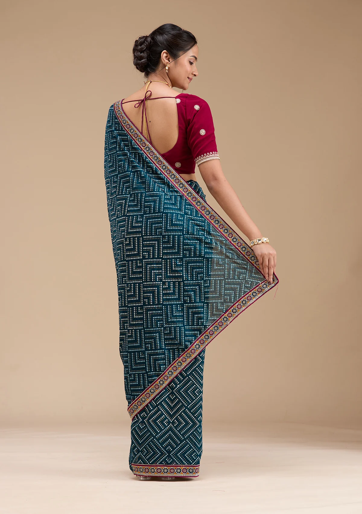 Peacock Blue Gold Zariwork Soft Raw Silk Saree