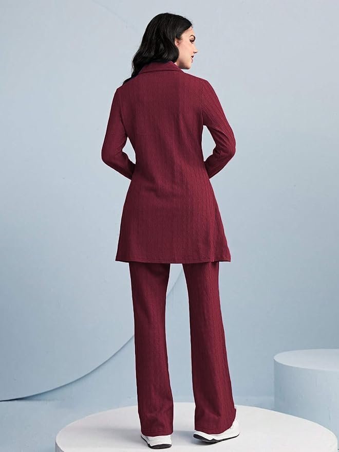 Women’s Solid Color Two-Piece Set | Long Sleeve Top & Wide Leg Pants Co-ord Set